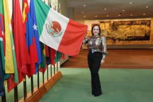 La alcaldesa forma parte de la representación de México junto al Embajador de la misión permanente de México ante la ONU, Héctor Vasconcelos.