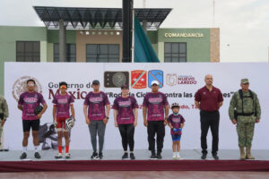 NLD 23 Junio de 2025.- Cientos de ciudadanos, junto a la alcaldesa Carmen Lilia Canturosas; el general de Brigada Diplomado de Estado Mayor, Fernando Colchado Gómez, comandante de la Octava Zona Militar y el Comandante General Brigadier Diplomado Estado Mayor Rolando Solano Rivera, comandante de la Guarnición Militar de Nuevo Laredo, encabezaron una colorida rodada ciclista para celebrar de manera activa el 177 aniversario de la ciudad.