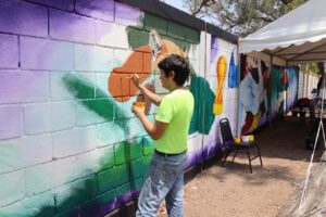Como parte de este proyecto, estudiantes del Taller de Artes Plásticas realizan un mural bajo la dirección de la Arq. María de Lourdes Silva Rodrigo, en colaboración con el Instituto Tamaulipeco para la Cultura y las Artes. Cruz Guerrero reconoció el esfuerzo de las y los jóvenes que participan en acciones que enriquecen su formación integral.