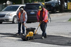 Para atender con prontitud la problemática ocasionada por el escurrimiento pluvial, personal del Departamento de Rehabilitación de Pavimentos realiza monitoreo diario en vialidades afectadas para programar el recubrimiento de hoyos, además de atender reportes ciudadanos a través del número 072.