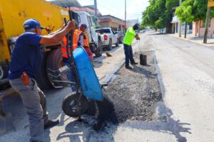 A temprana hora, se activaron los trabajos de bacheo en las avenidas Hombres Ilustres, José Sulaimán Chagnón y calle UAT, Zeferino Fajardo a libramiento Naciones Unidas, boulevard Emilio Portes Gil y calle Olivia Ramírez, del 10 hasta el 21.