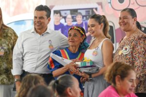 Fue una mañana de fiesta en el DIF Victoria, llena de música, obsequios y degustaciones en el que participó la Secretaria de Mujeres del Estado Valentina Cota, y la abuelita Gregoria Briones López que agradeció a las autoridades seguir ayudando y uniendo corazones.