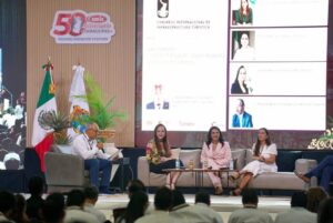 La alcaldesa formó parte del foro “Oportunidades de inversión: infraestructura de calidad para un turismo sostenible”, junto a Yvette Valenzuela Becerra, titular de la Unidad de Banca de Empresas de Bancomext; Mónica Zacil Villarreal Anaya, alcaldesa de Tampico; Héctor Flores Santana, presidente de la Comisión Nacional de Turismo de Coparmex; y Quel Galván Pelayo, vicepresidente ejecutivo de Desarrollo Empresarial en Infraestructura Privada de la CMIC, quien fungió como moderador.