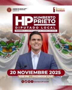 Reynosa 18 Noviembre de 2025.- El Diputado Local Humberto Armando Prieto Herrera, anuncia primer informe de actividades legislativas representando al municipio de Reynosa Tamaulipas.